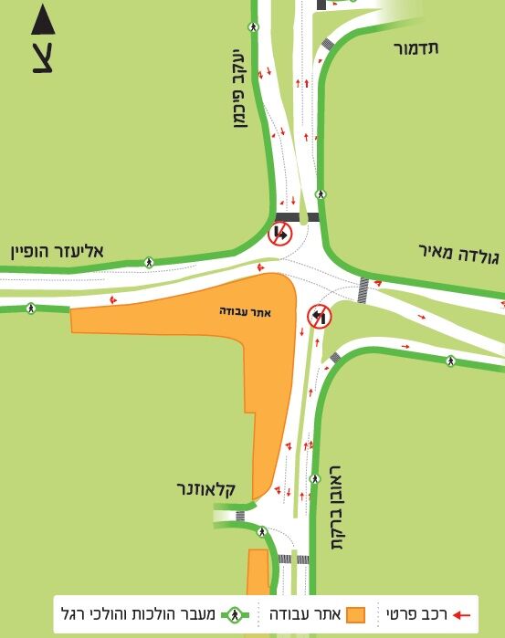 - לבאים מכיוון צפון, לא תתאפשר הפנייה שמאלה מרחוב יעקב פיכמן לרחוב גולדה מאיר.