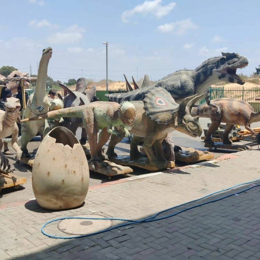 לקראת תערוכת הדינוזאורים הגדולה שתחל להציג ב20.7 בחולון, הגיעו הבוקר לפארק פרס מיצגי הענק של הדינוזאורים.