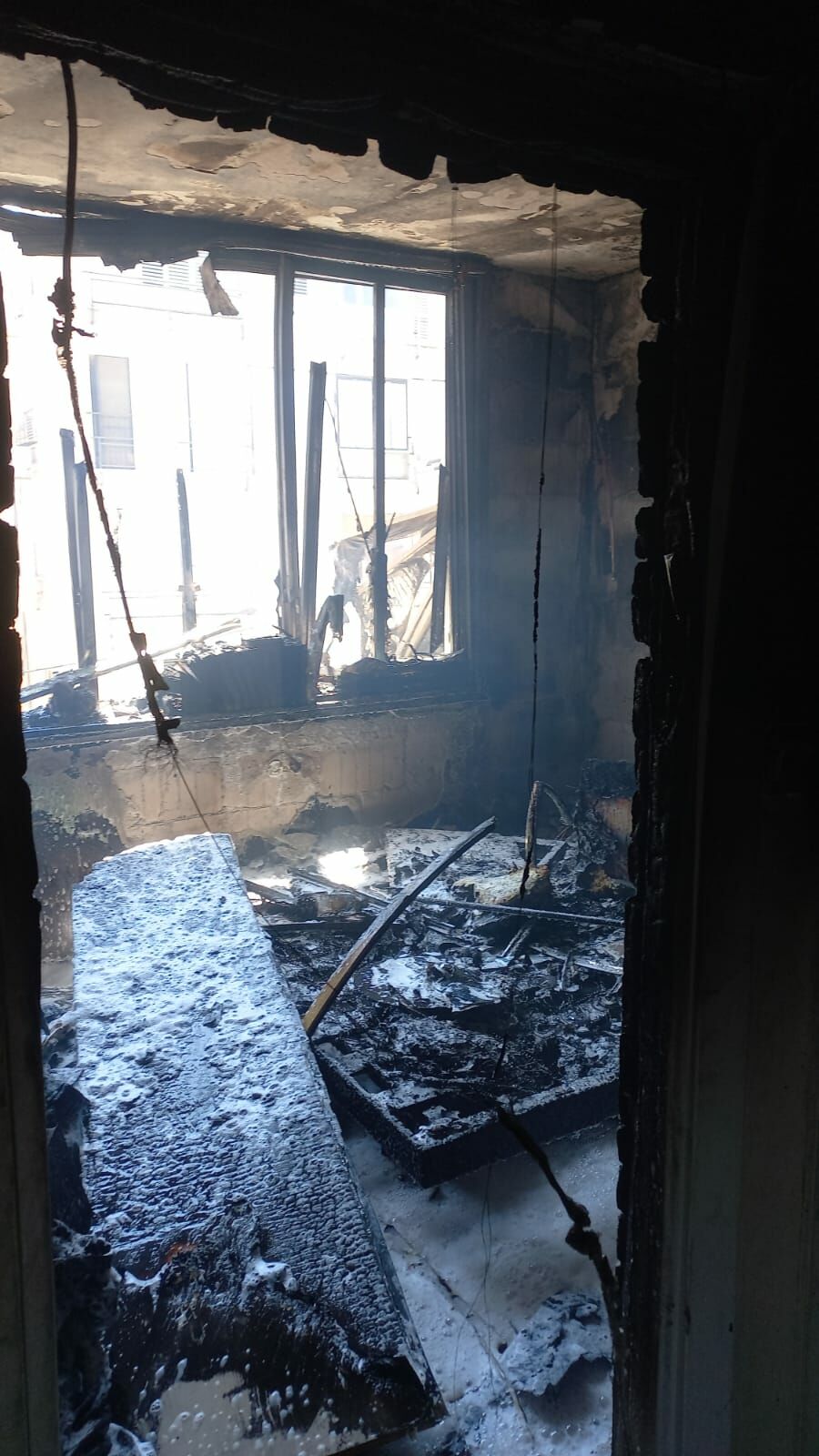חוקר דליקות זומן למקום לבדיקת נסיבות פרוץ הדליקה.
