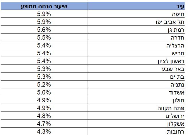 בניתוח לפי ערים נמצא שיעור ההנחה הגבוה ביותר בשתי הערים המבוקשות בישראל , ת"א וחיפה – עם הורדת מחיר ממוצעת של 5.9%