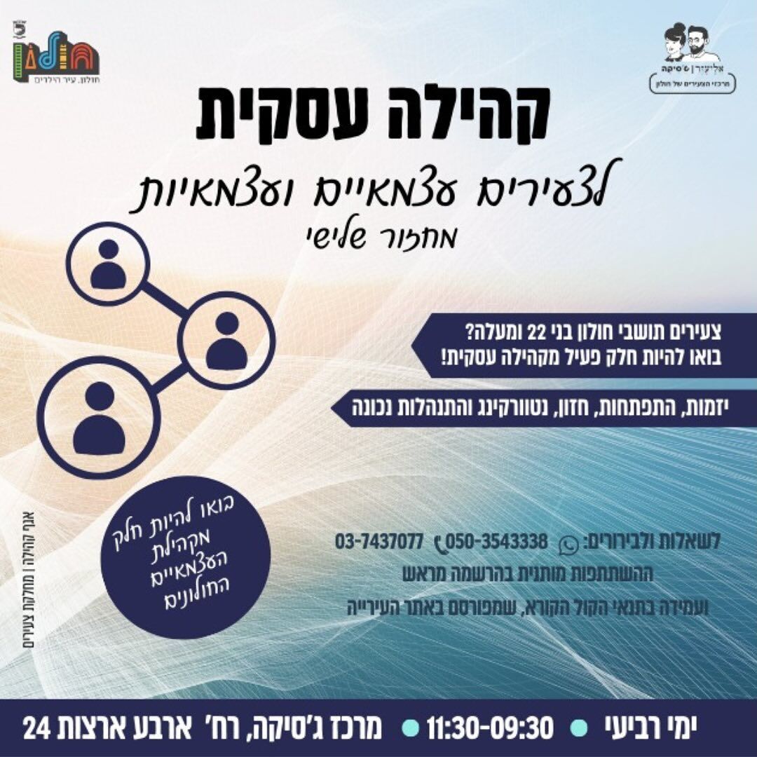 לידיעת בעלי העסקים העצמאיים בחולון! קורס קהילה עסקית בחולון פותח את מחזורו השלישי - הזדמנות לצמיחה עסקית עם 12 מפגשים מרתקים ופעילות התנדבותית בעלות מסובסדת