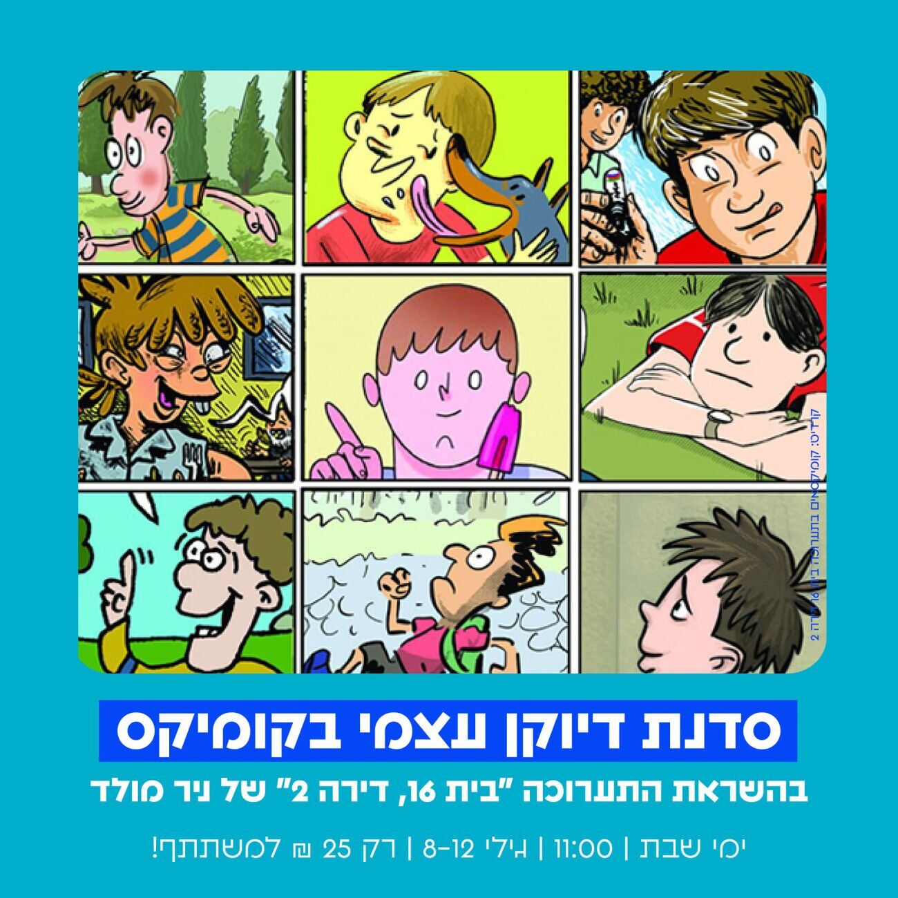 סדנת דיוקן עצמי בקומיקס בשעה 11:00 - לגילי 8+ | לכרטיסים > https://shorturl.at/WLenw