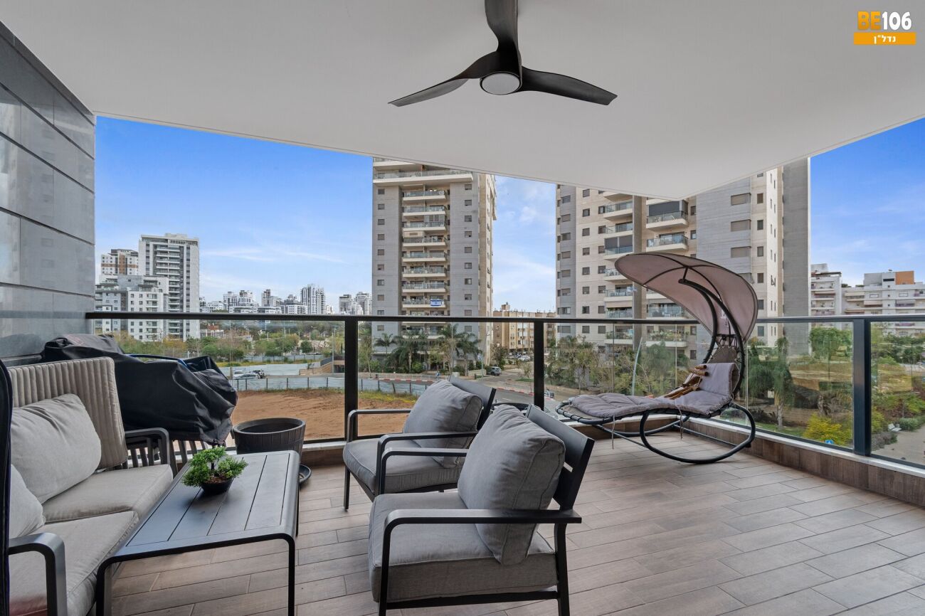 מרפסת שמש גדולה כ־20 מ"ר עם יציאה מהסלון