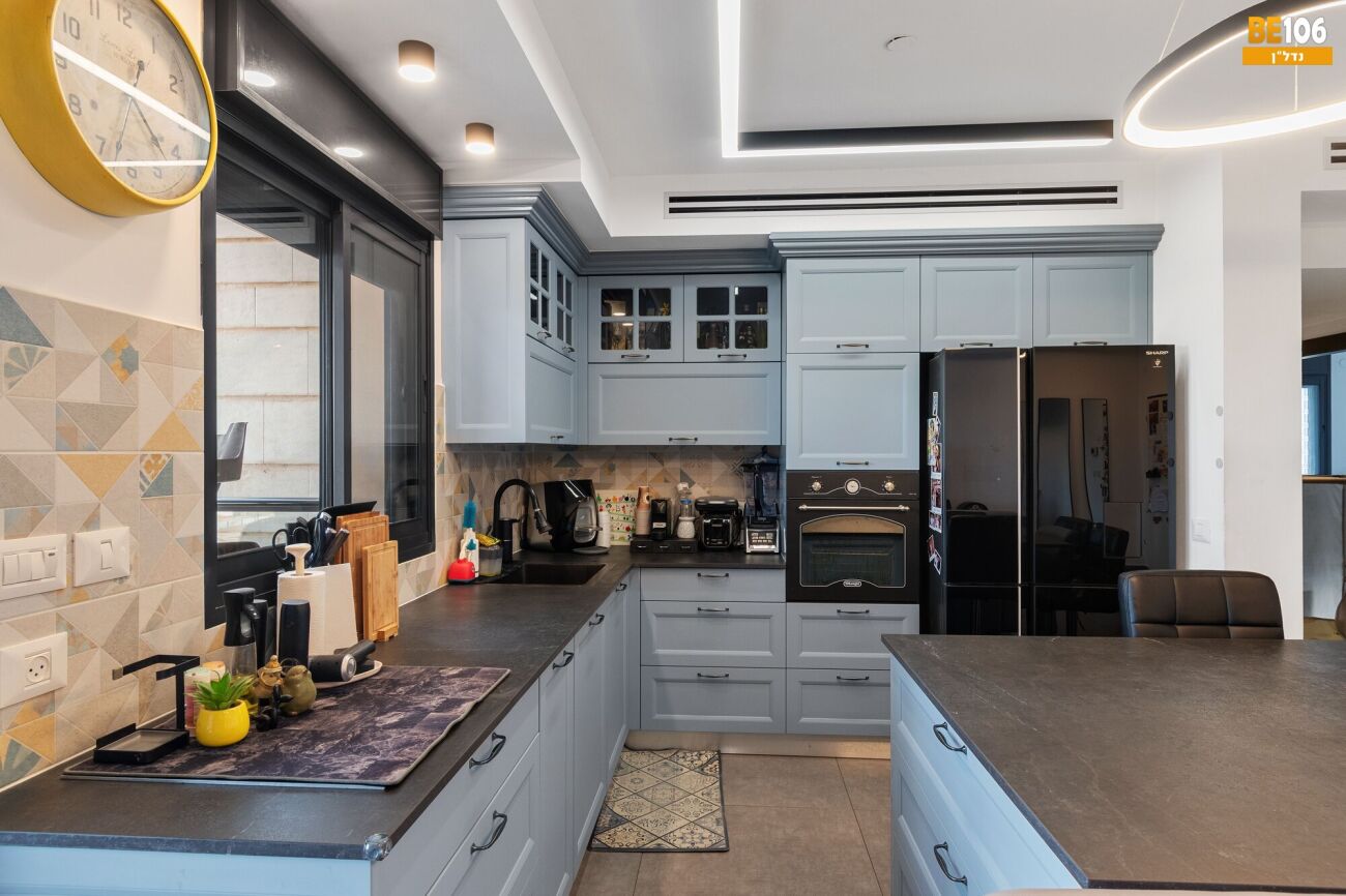מטבח משודרג עם אי גדול ופינת ישיבה